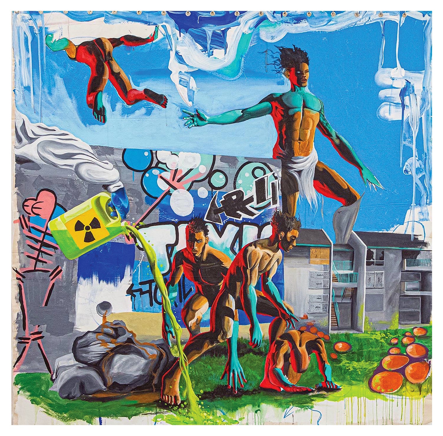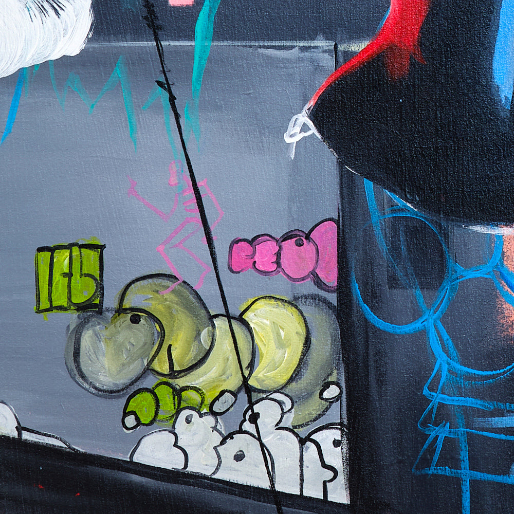Acrylic, spray paint , pencil, graphite and paint marker on canvas. Currently on auction via @drbrandtfoundation